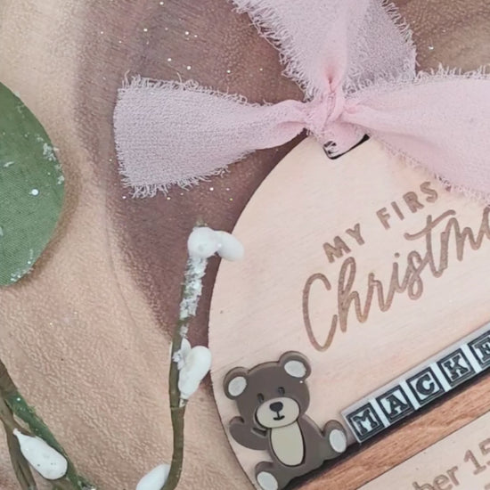 Celebrate a little one’s very first Christmas with a keepsake designed to be treasured for a lifetime. This handcrafted ornament blends timeless materials, sweet storybook details, and full personalization to create the perfect newborn gift, holiday announcement, or baby’s first Christmas memory.