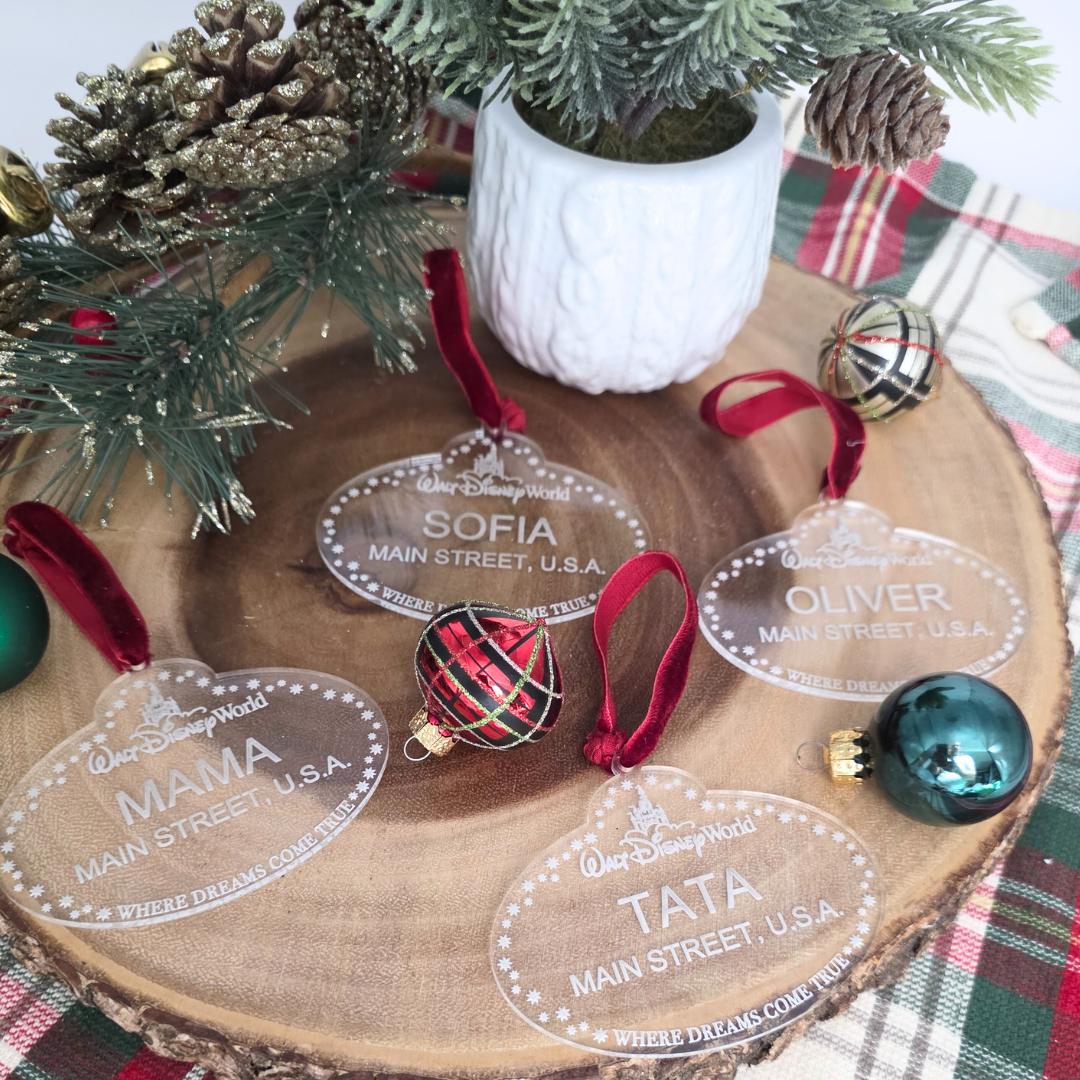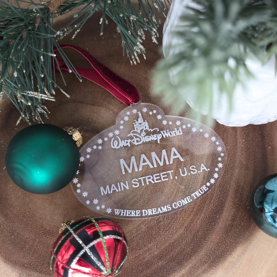 Custom Acrylic Cast Member Ornament - Theme Park Inspired Christmas Decor