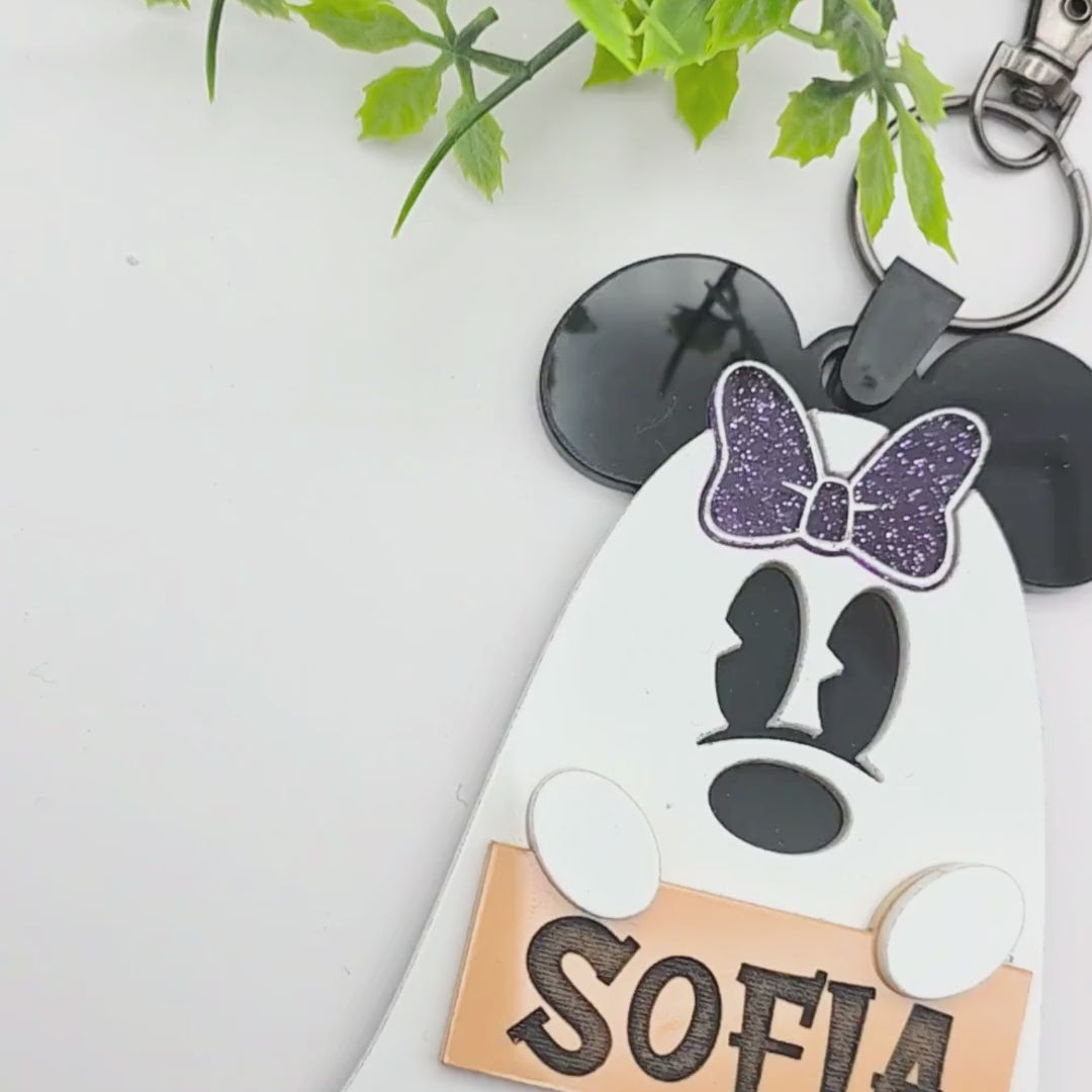 Add a whimsical touch to your Halloween treats with these adorable personalized ghost tags! Perfect for boo baskets, trick-or-treat bags, or festive keychains, these charming little spirits come in two magical styles - one with classic round ears, and one with a sparkling purple glitter bow. Each tag is layered in premium acrylic and engraved with the name of your choice, held in a tiny ghostly sign. Lightweight yet sturdy, they’re perfect for spooky season gifting or adding a bit of fun to backpacks, diaper bags, or keys.